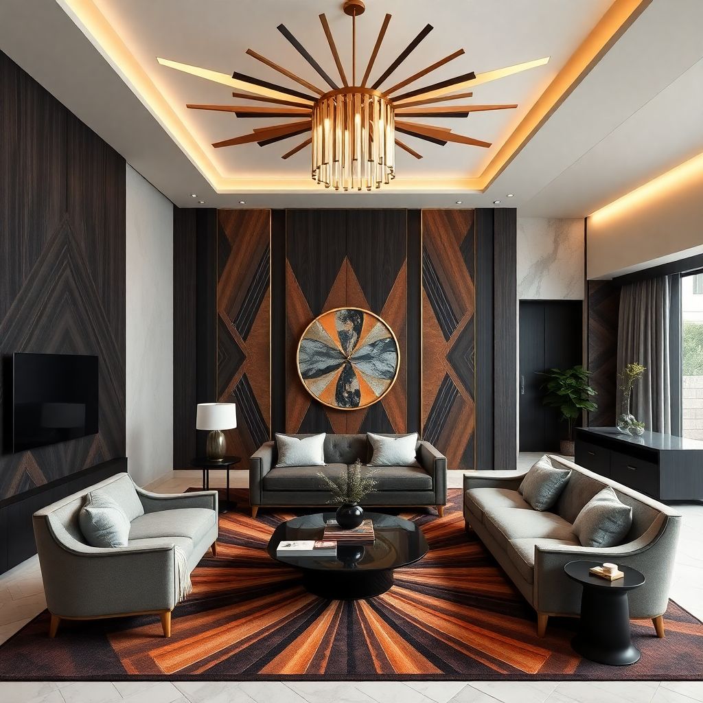 Если разобрать ар-деко на «детали корпуса», то получится набор узнаваемых маркеров. Во‑первых, геометрия: зигзаги, лучи, каскадные формы, ступенчатые порталы, радиальные узоры, которые часто выносят на стеновые панели, ковер или фасады мебели. Во‑вторых, контрастные сочетания: темное дерево и светлый камень, глубокий тон стен и светлый текстиль, глянец против матовых поверхностей. В‑третьих, металлы: латунь, хром, иногда черный никель — в ручках, окантовке зеркал, ножках столов, светильниках. Наконец, центральная композиция: диванная группа, кровать или обеденный стол как визуальный «якорь». Чтобы понять, что вам ближе, полезно внимательно разобрать ар-деко в интерьере фото идеи из реализованных проектов, обращая внимание не только на «красивую картинку», но и на планировку и сценарии освещения.